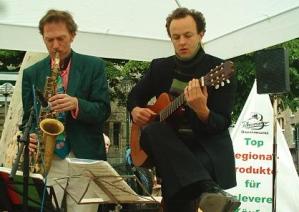 Für die musikalische Untermalung sorgten Frank Michaelis (Saxophon) und Andrè te Poel (Gitarre) von der Samba-Latin-Band "Evora", die den Platz mit angemessen lebendigem Latin-Jazz in gewohnter Qualität beschallten.