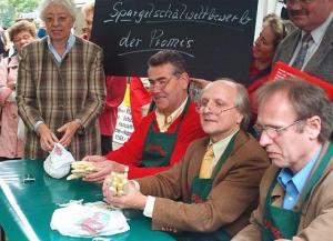 Grosses Gelächter gab es, als die Ehrengäste ihr Können beim "Spargel-Wettschälen" unter Beweis stellen mussten.