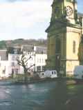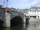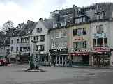 Jetzt endlich zeigte sich auch die Genialität des alten Godefroy. Bouillon besteht ja im Wesentlichen aus einem Berg in der Mitte, einer kreisförmigen Bergkette drumherum, und dem gepipeten Fluss dazwischen. Zuwenig Platz, dachten die Bouillonner zuerst, und bauten erstmal das Flussufer beiderseitig mit Hotels und Restaurants voll.